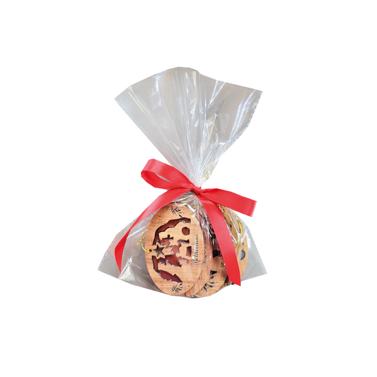 This one of a kind Nativity set capture the true enviorment of Jesus's birth in Bethlehem. Each Olivewood tree branch is Hand Carved and Unique, no two caves are alike. the set comes with Jeseph, Mary, Baby Jesus, a shephard boy, 2 Cows, 2 Sheep and 3 wisemen.